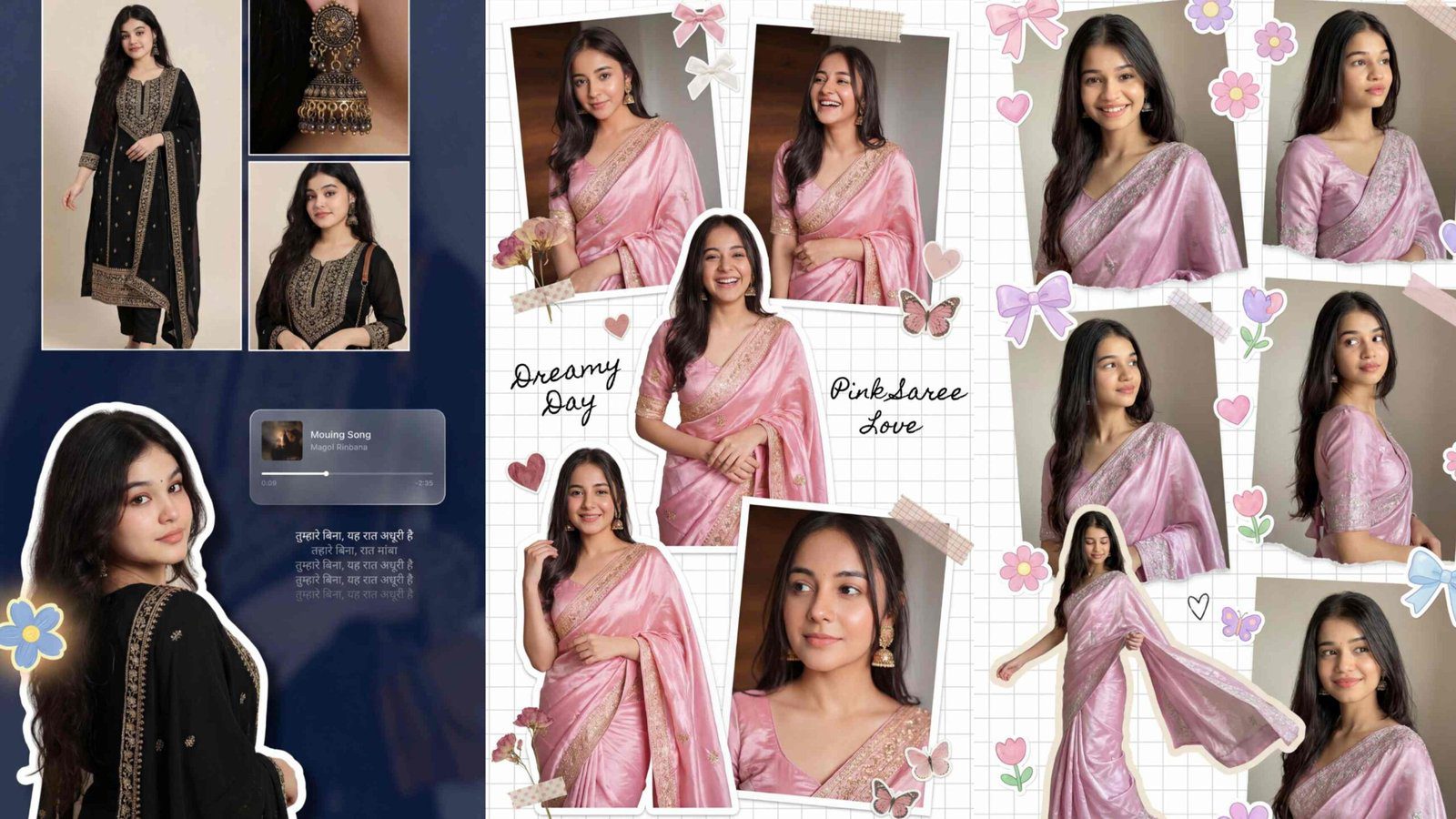 Dreamy Scrapbook Collage Aesthetic Tutorial – Pastel Pink Saree Pinterest Moodboard (AI Prompt Guide)
