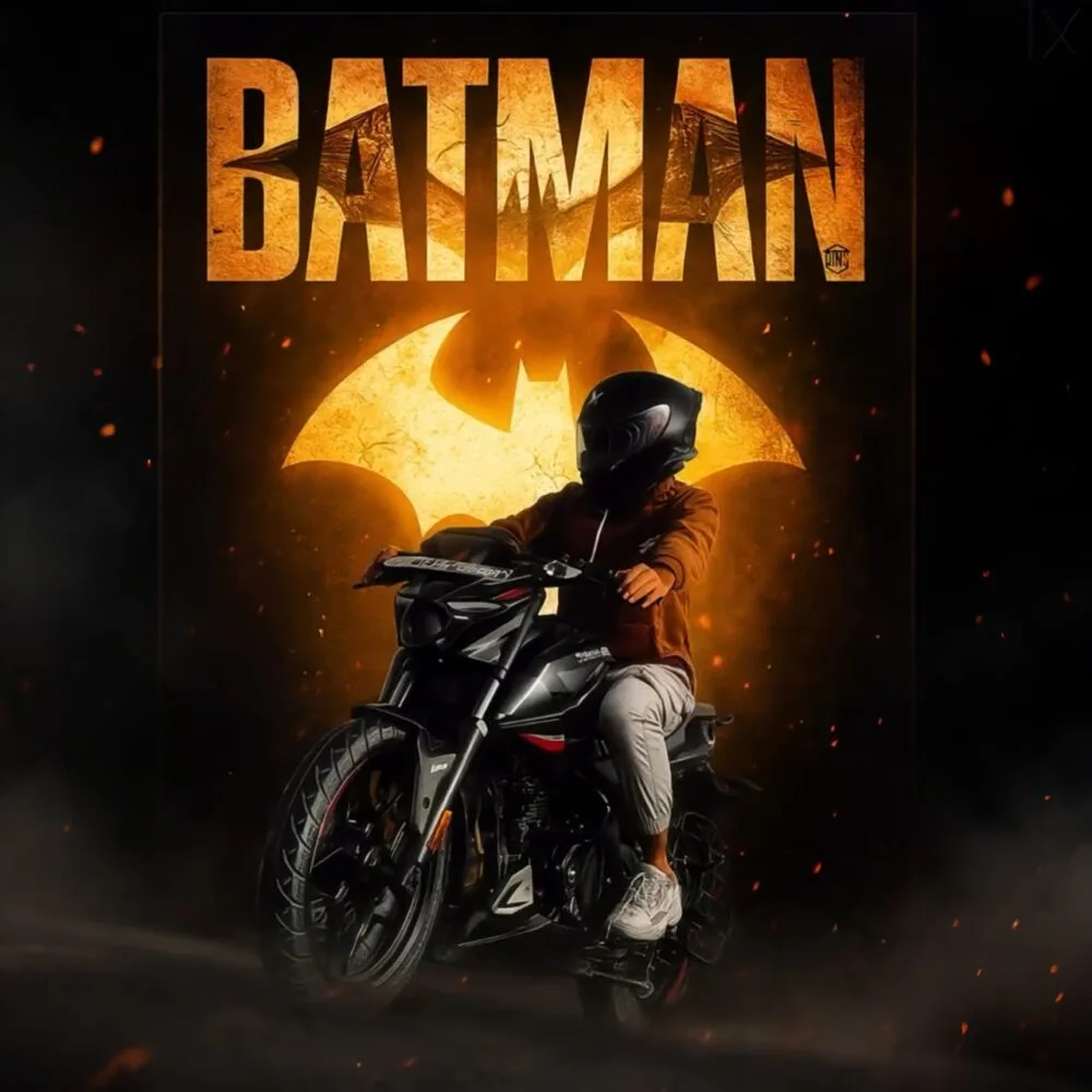 Prompt- create image into a batman text at background and with vfx edits like batman logo design at background into a poster
