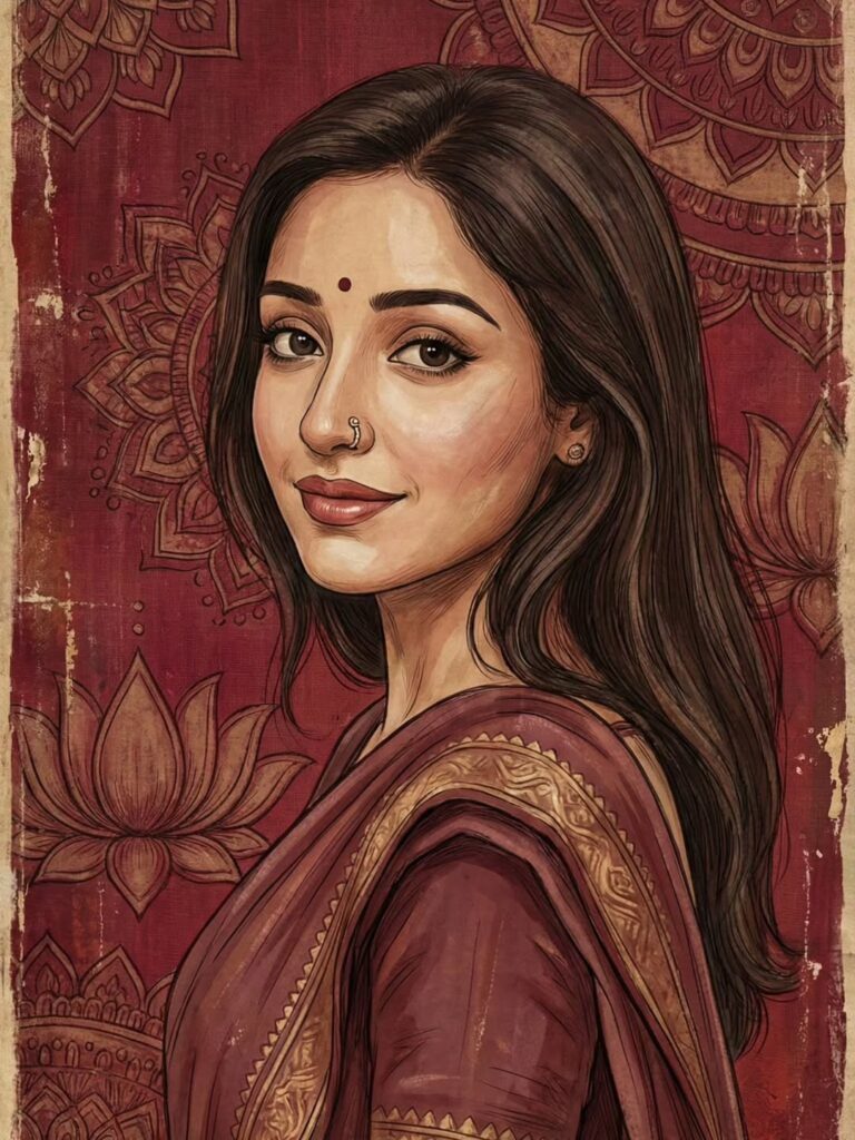 Traditional Indian art meets modern digital illustration1. Cinematic Portrait Style