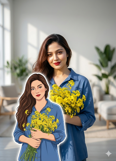 - Main Character (Real Photo): The original image remains completely realistic, with natural lighting and no cartoon effect.